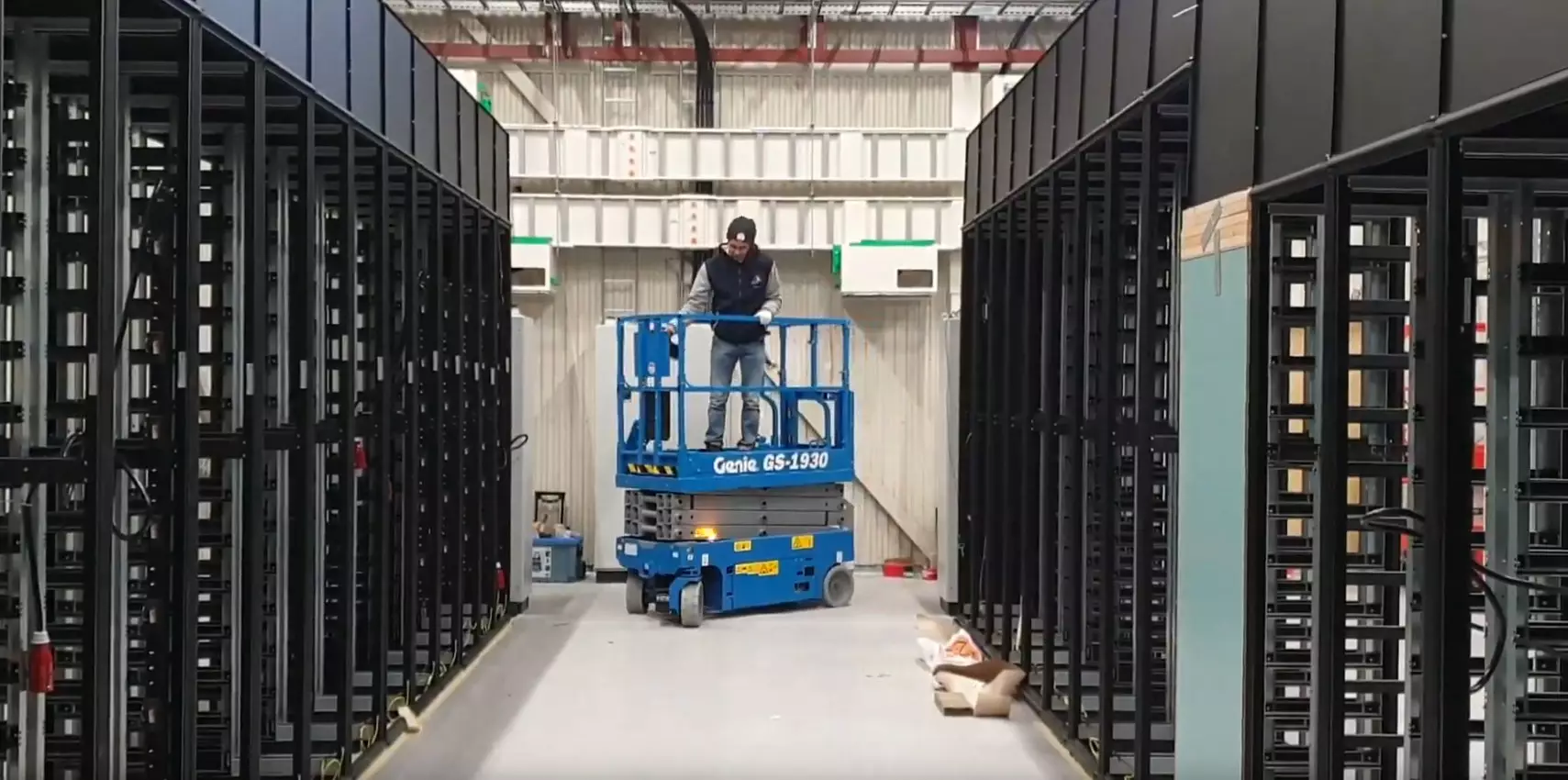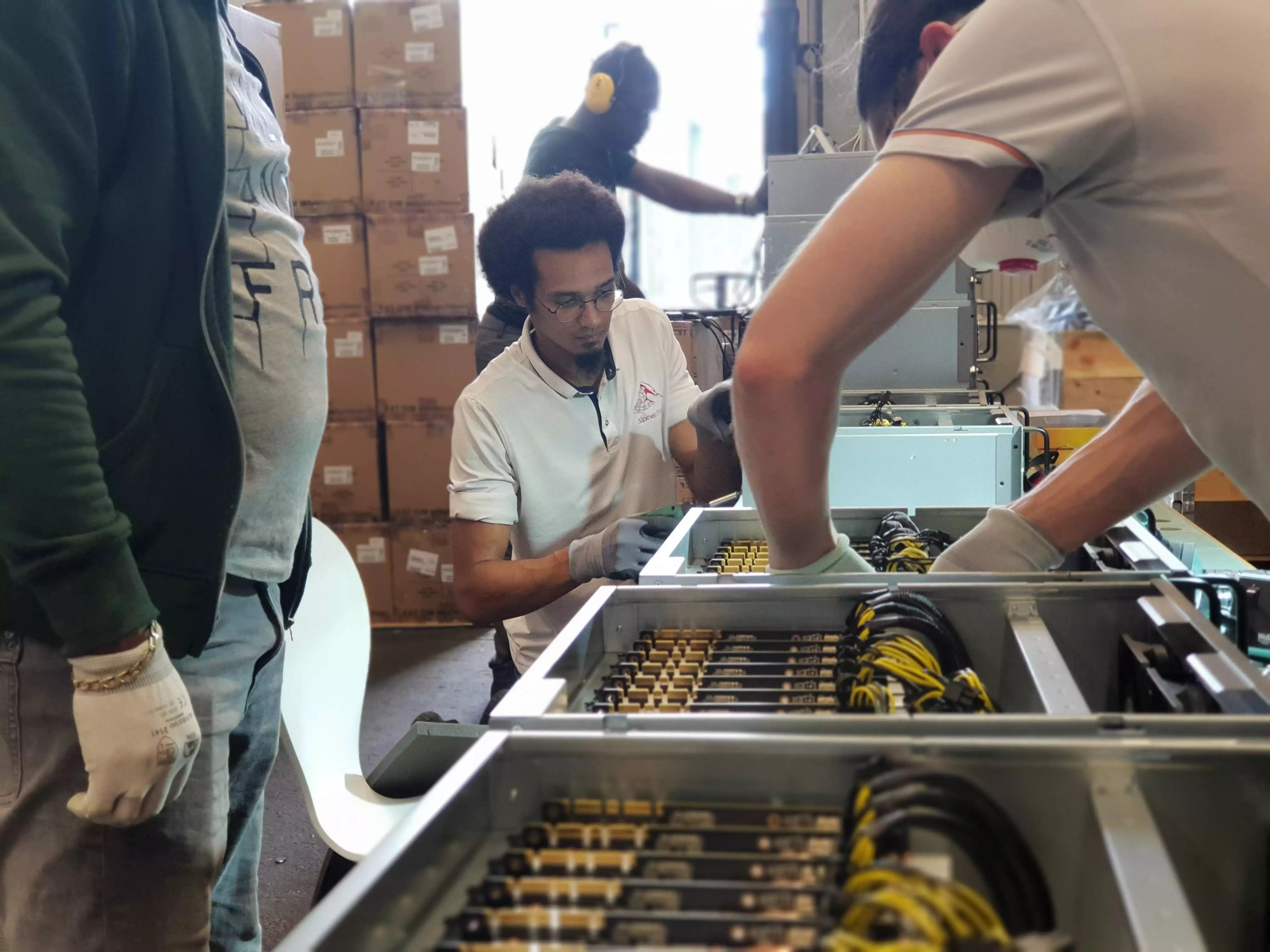 During the first phase we've prepared the area and did the planification. The we started to receive the material, around hundred 42-ton trucks filled with 40'000 GPUs, 5000 CPUs and Motherboards, PCIe, PSU, PDU, 47U and 58U Racks. Each trucks came straight to the location of the future Datacenter and we unloaded each of them. Then we've mounted each parts which took us approximately 2 hard working month full time.
